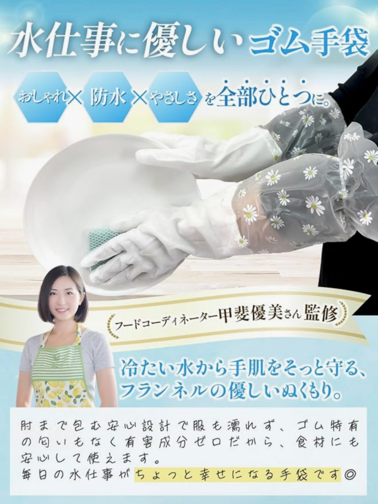キッチン仕事を楽しくするロングゴム手袋、Amazonにて発売中です。