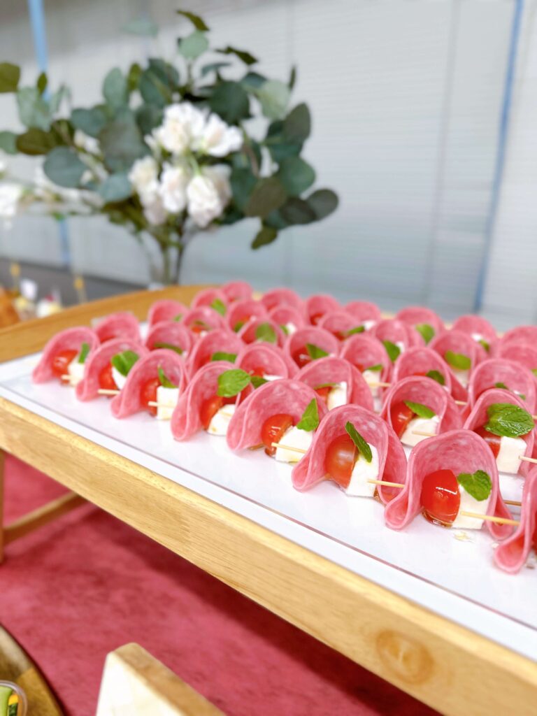 約1時間の懇親会のため、会話しながらでも手に取ってパクっと食べやすいものが人気とのことでした。